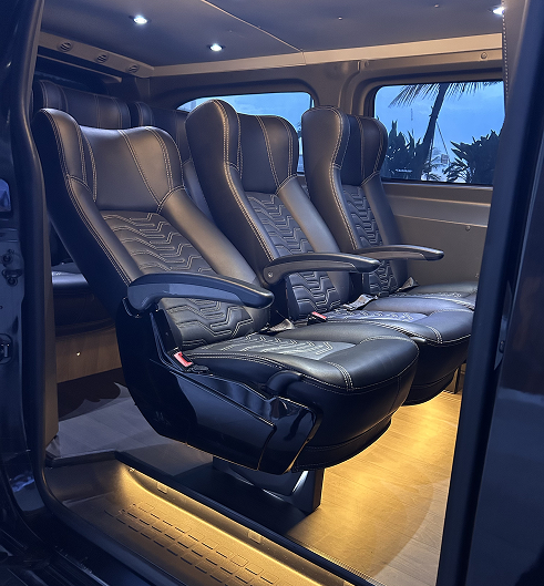 Quando o assunto é transporte artístico, temos em nossa frota, algumas mini vans de luxo, com poltronas reclináveis, cortina privativa luz de leitura individual, carregador de celular, é ideal para quem busca exclusividade em transportes no Rio de Janeiro.